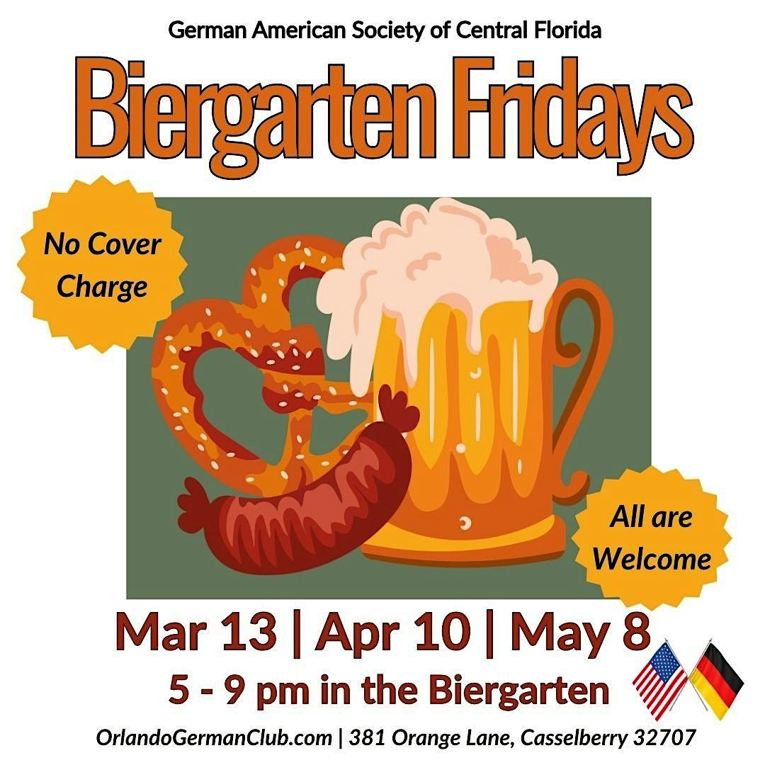 Start the weekend off right at Biergarten Fridays at the German American Society of Central Florida. Free admission. Free parking. German beer on tap, wine, drinks, music and German food!