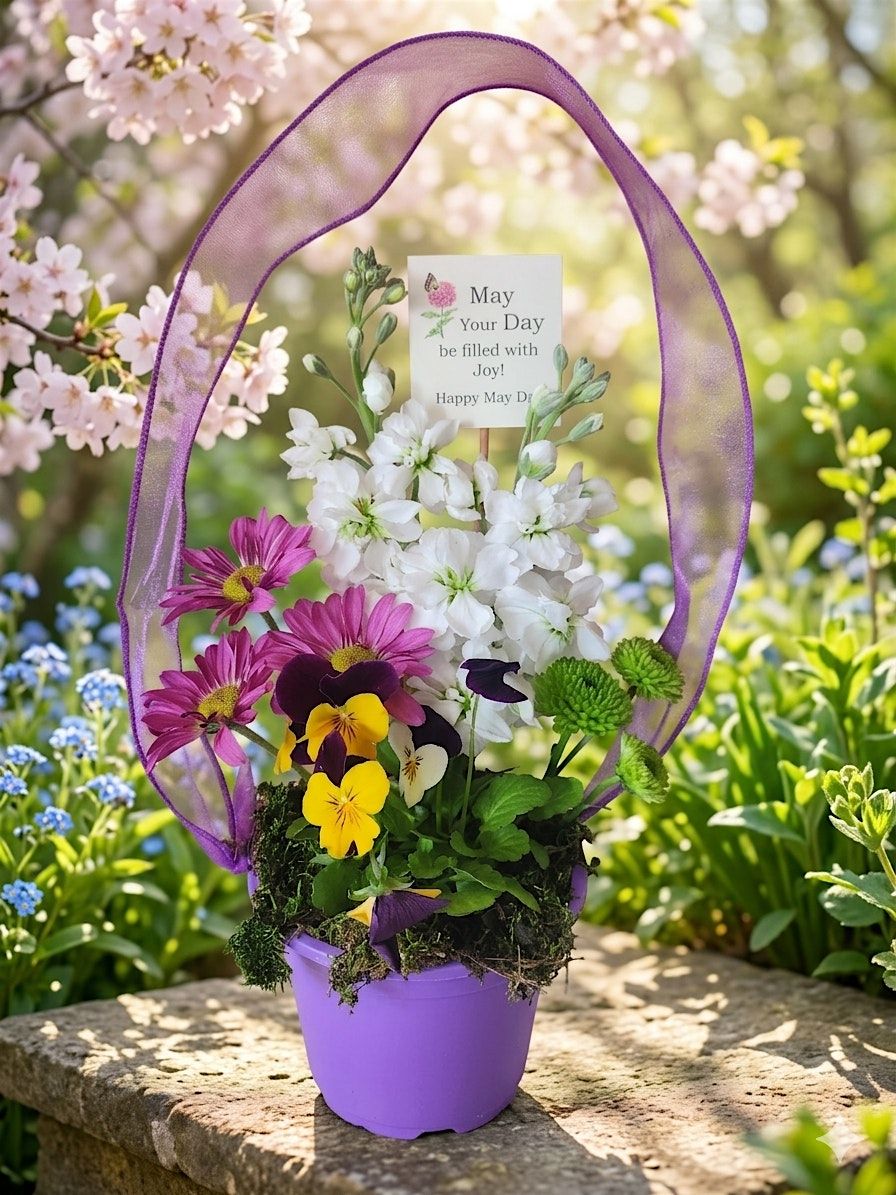 In this hands‑on workshop, you’ll plant a cheerful spring flower in a colorful pot, add a few fresh‑cut blooms, tie on a ribbon for hanging, and finish with a sweet card that reads: “May Your Day Be Filled with Joy — Happy May Day.”