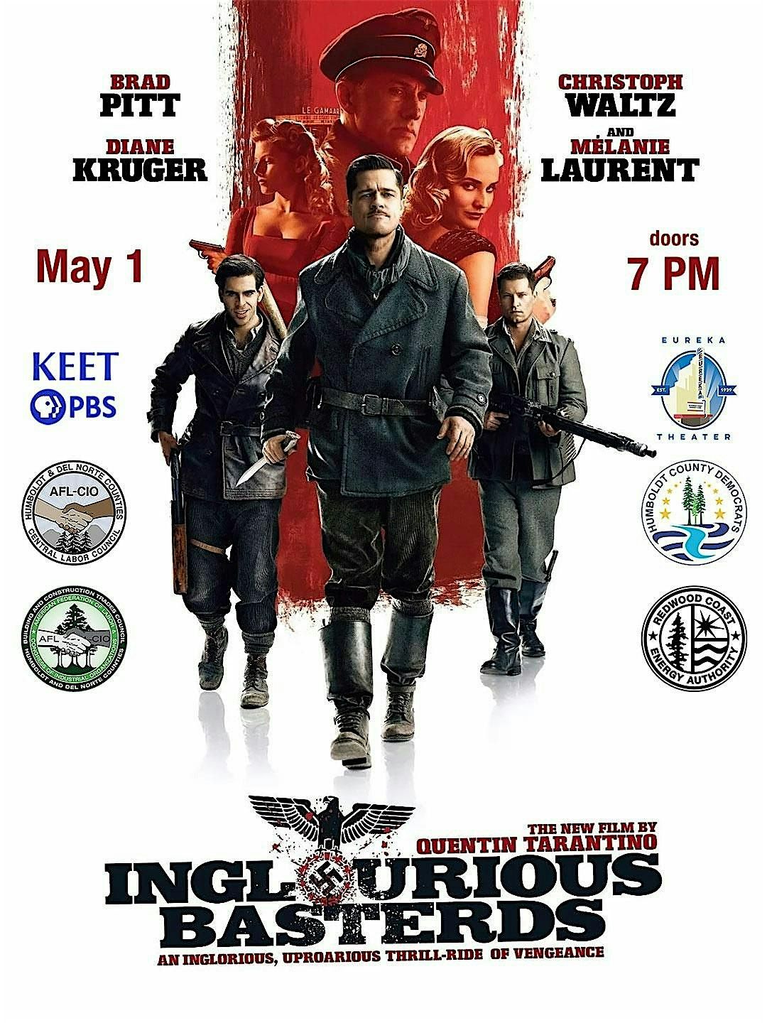 Join us on Friday, May 1st at the historic Eureka Theater for a special edition of our Essential Cinema series. We are celebrating the labor holiday of May Day with a big screen presentation of Quentin Tarantino's explosive WWII revenge fantasy, Inglourious Basterds.