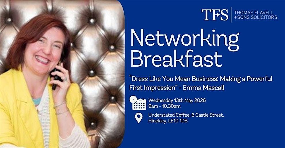 We'd love to invite you to our next Wednesday Breakfast Networking event on Wednesday 13th May from 9am - 10.30am at , 6 Castle Street, Hinckley, LE10 1DB