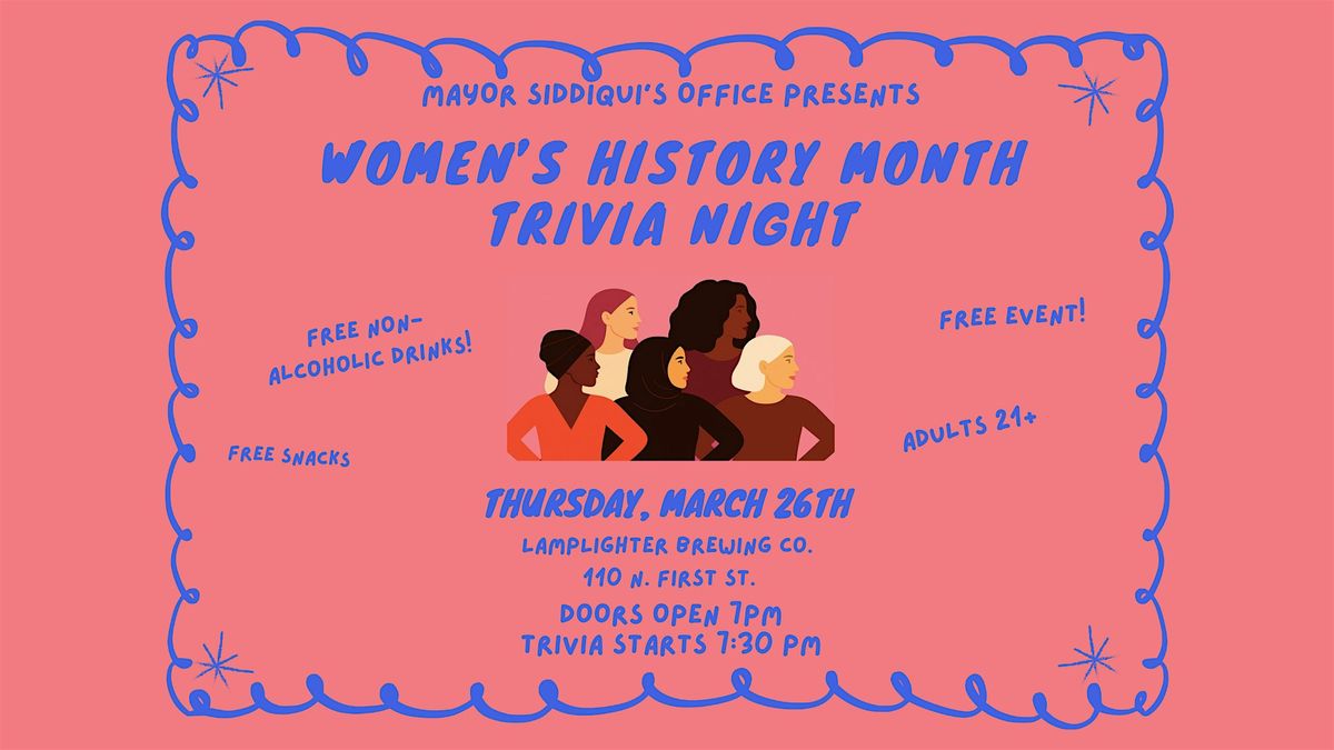 To celebrate, Mayor Siddiqui's office is hosting a Trivia Night to test everyone's knowledge about Women's History! The event will take place at our Cambridge Crossing location on Thursday, March 26th. Doors open at 7, and trivia starts at 7:30!