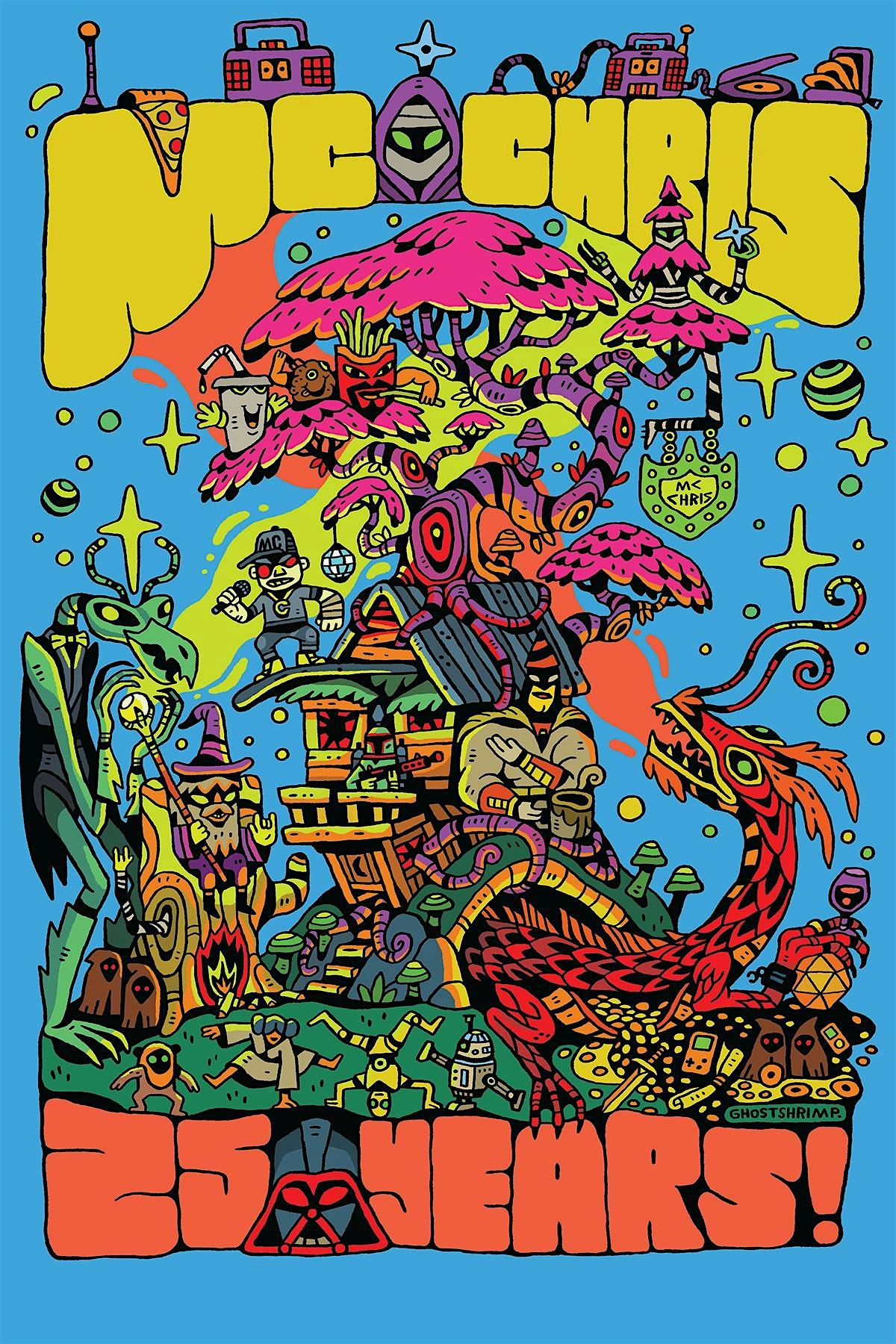 It was twenty-five years ago that most fans first came across mc chris when Adult Swim premiered September 2nd, 2001. The first album was free for download on a website most OG fans found in the credits of a random Sealab episode. After five years of working for Cartoon Network during the day and making mc chris music at night, mc took a chance, quit his job and headed out on the road. He found packed venues filled with nerdy kids who knew all the words. Twenty years later he’s still at it, playing the same venues, singing along with the same kids, who are now in their thirties. The only difference is now they’ve either brought their kids or given themselves a much-needed night off. This year mc celebrates 25 years in existence and a new Marvel inspired album, King in Black.