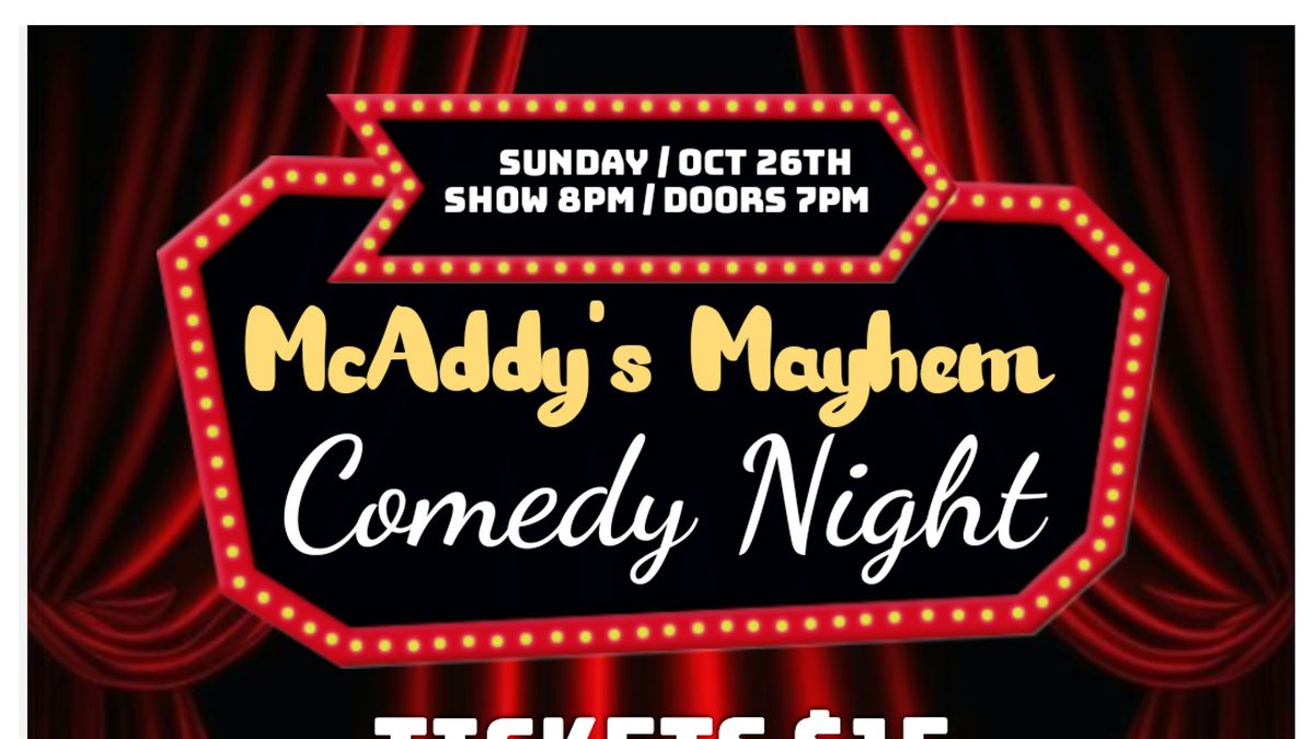Welcome to McAddy's Mayhem Comedy Show! Get ready for a night of Stand up comedy filled with laughter at our hilarious in-person event. Join us at McAddy's for a lineup of talented comedians ready to tickle your funny bone. Don't miss out on this evening of fun and entertainment. Grab your friends and come on down for a night you won't forget!