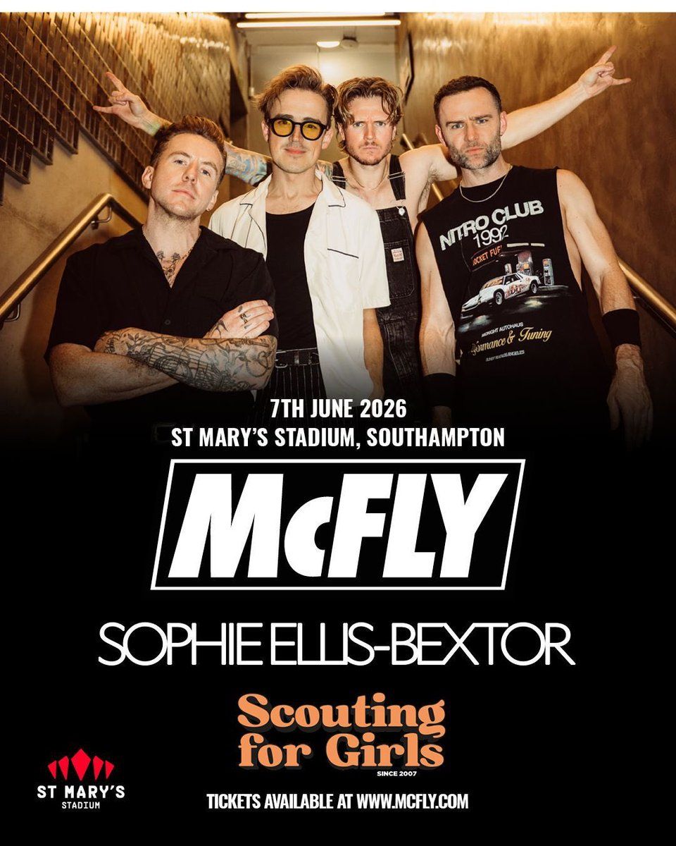 McFly at St Mary's Stadium๐ Welcome to McFly Southampton Tickets, where the impossible becomes possible and dreams take flight! ๐๏ธ Join us at St Mary's Stadium in the heart of Southampton, EN for an event that will redefine your expectations. ๐