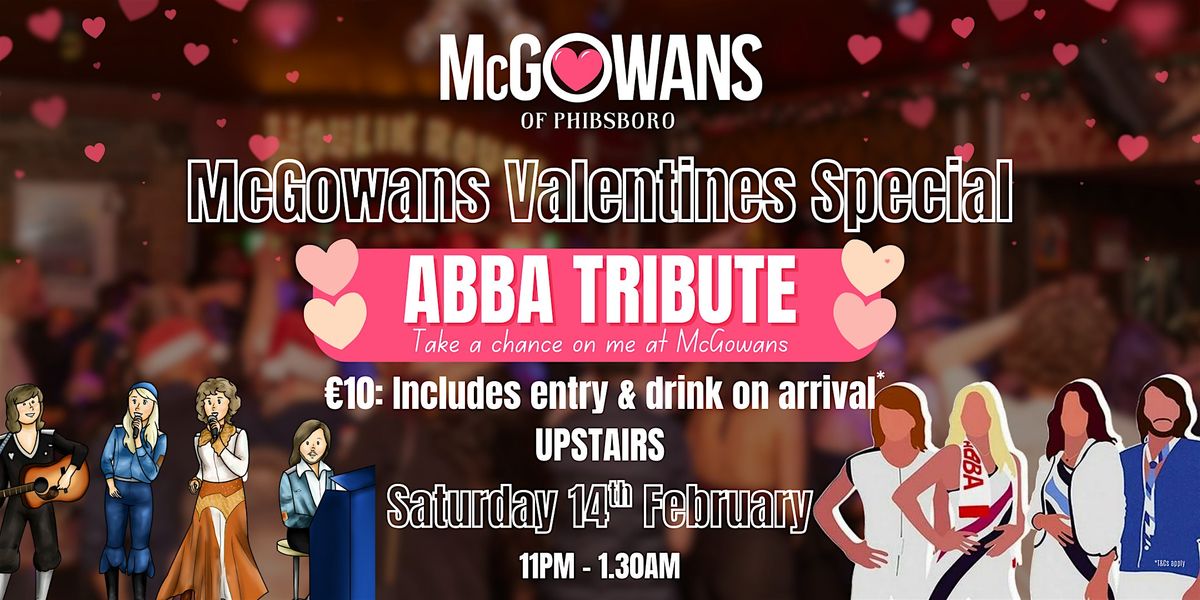Take a chance on love this Valentine’s Night with an unforgettable ABBA Tribute Party upstairs at McGowans of Phibsboro 🪩