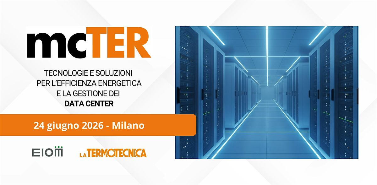 mcTER Data Center vi aspetta a Milano all’NH Milano Congress Centre il 24 giugno 2026 e anticipa l’appuntamento dell’anno: mcTER EXPO - Efficienza Energetica e Rinnovabili in programma 7-8 ottobre 2026 al Pad.4 di Veronafiere, che vuole essere un riferimento per la transizione energetica, coinvolgendo i settori delle energie rinnovabili e dell’efficienza energetica nell’industria, nel terziario e nel residenziale nZEB (Near Zero emission).