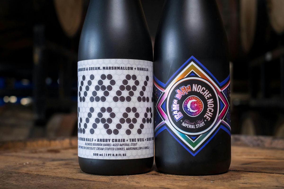 MD (Blend #2): MD, short for Medianoche Derivation, starts with a grist bill blending elements of both Medianoche and Derivation. Using Medianoche’s extended boil technique, we crafted a full-bodied imperial stout, which we then aged in 15-year-old Old Fitzgerald Bottled-in-Bond bourbon barrels and seven-year-old Weller bourbon barrels. These casks lend layers of crème brûlée, hazelnut nougat, and a whisper of cinnamon spice. After an extended rest, we added Madagascar vanilla beans and dark, robust maple syrup, reminiscent of Blend No. 1. Best enjoyed with biscotti in place of your post-meal cappuccino.
