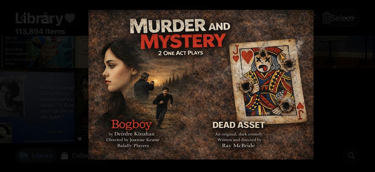 M**der and Mystery. 2 Intriguing One Act Plays in T@36, Teachers Club, D1.