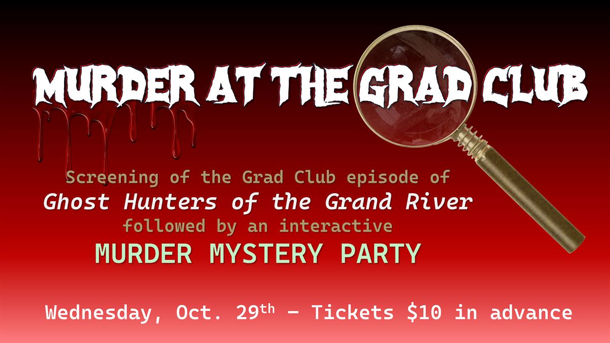 We'll begin the night with a screening of an episode of Ghost Hunters of the Grand River, featuring an actual ghost hunt filmed right here at the Grad Club. See what the investigators uncovered, and decide for yourself if the spirits still linger...