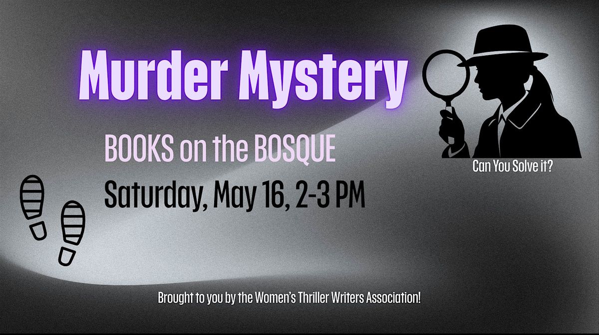 Join us at Books on the Bosque for an afternoon of intrigue, deception, and literary celebration. Step into the story as one of our suspects, or put on your detective hat and help crack the case. Either way, no one leaves without a little blood on their hands — figuratively speaking.
