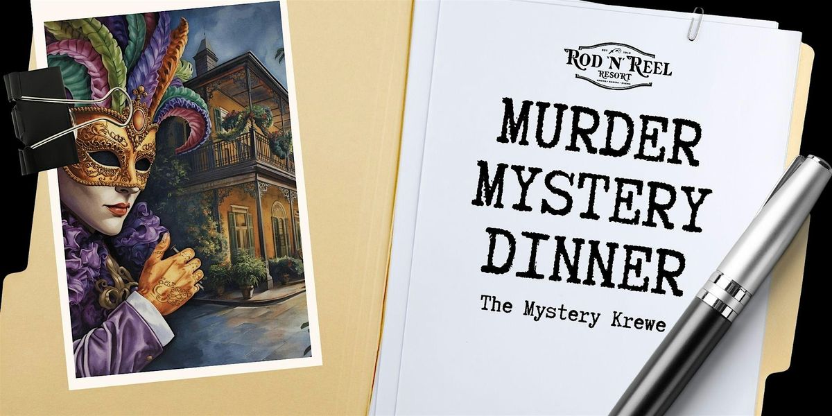 Welcome to the M**der Mystery: Dinner & Show event on Saturday, February 21st! Get ready for a thrilling evening with "The Mystery Krewe" at Rod 'N' Reel Resort. With a welcome snack bar and cash bar, dinner buffet, and a M**der mystery to solve, you won't want to miss this event!