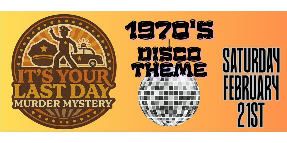 Can you keep everyone groovy and dancing the night away while discovering who they are and solve the case before some jive turkey gets off the hook? Join us for the "It's Your Last Day" M**der Mystery Dinner, an exciting in-person event where you get to be the detective! Enjoy a delicious meal while unraveling clues to solve the case. Gather your friends, put on your thinking caps, and get ready for an unforgettable evening of fun, intrigue, and maybe a little bit of drama. Don’t miss out on the thrill and laughs--this is one dinner you won’t forget!