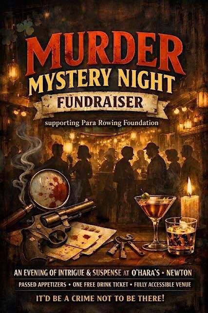 Join us for an exciting in-person evening filled with twists, turns, and suspense! Dive into a thrilling M**der mystery where you'll work alongside fellow detectives to crack the case. All while supporting the amazing Para Rowing Foundation. Included with your ticket: