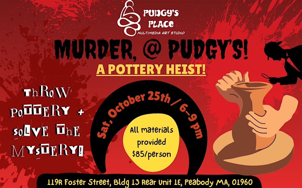 M**der @ Pudgy's! Mystery wheel throwing pottery art heist! (10/25; 6-9pm)