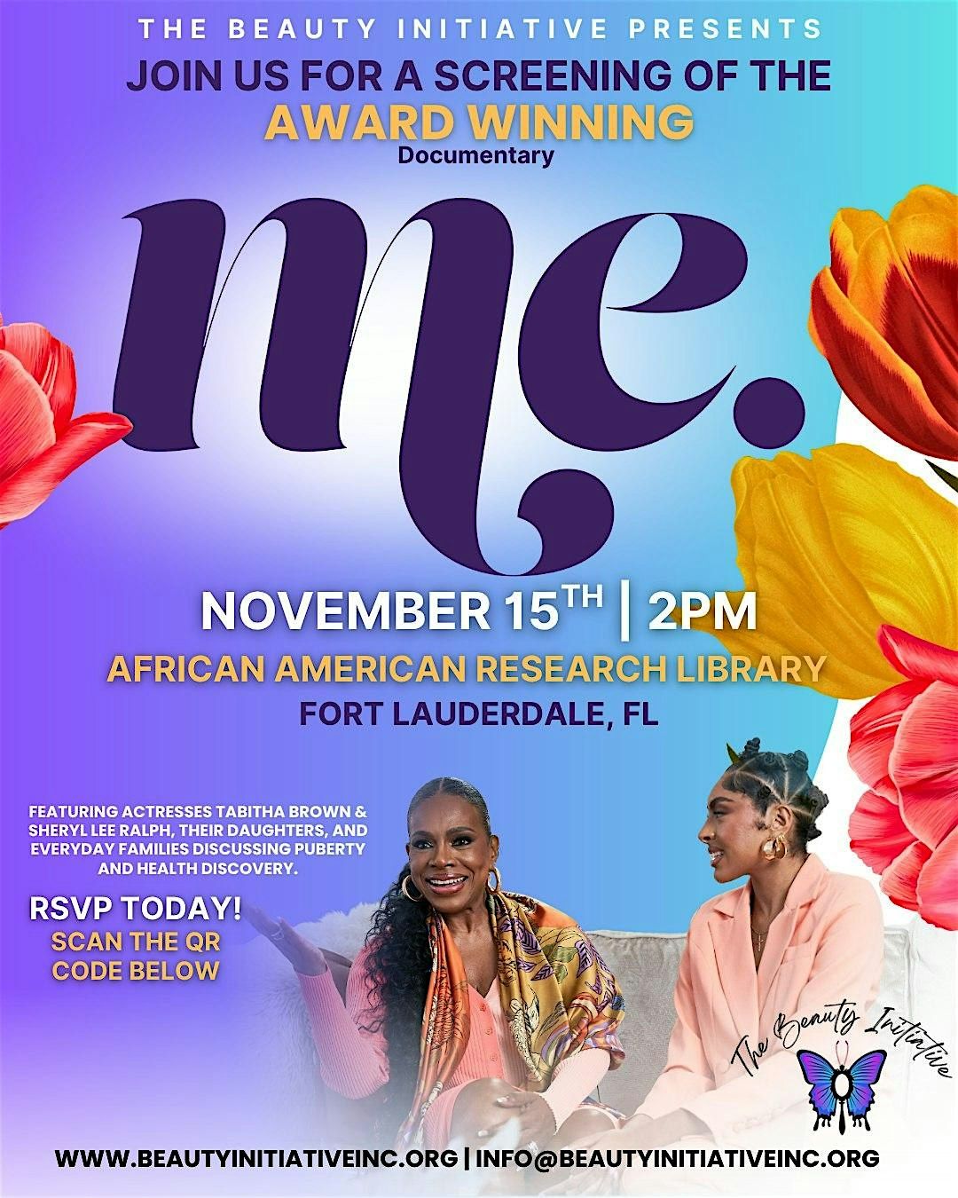 The Beauty Initiative is proud to announce a special screening of the groundbreaking documentary Me Period. This award-winning film explores the beauty, challenges, and empowerment of puberty and menstruation through the eyes of Black families. The screening will take place on Saturday, November 15th at African American Research Library and Cultural Center in Fort Lauderdale.
