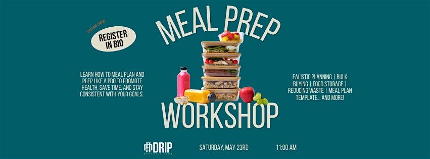 Join us at Drip Athletic Club on May 23, 2026 at 11:00 AM (Central Time) for a fun and educational workshop! We’ll dive into smart meal planning and prepping tips that make your week less stressful and your meals way tastier. Whether you're a kitchen newbie or just looking to up your game, this is the spot to get inspired and leave ready to conquer your meal routine. Don’t miss out on good food and great company!