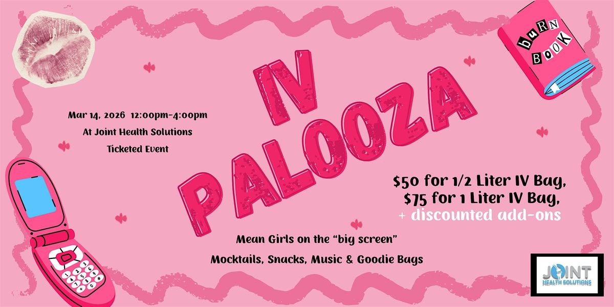Join us in person for the ultimate hangout, IV Palooza! It's gonna be a blast filled with good vibes, awesome people, and unforgettable moments. Don’t miss out on all the fun and excitement happening live. Come through, bring your crew, and make some epic memories. IV Palooza is where the party's at — see you there!