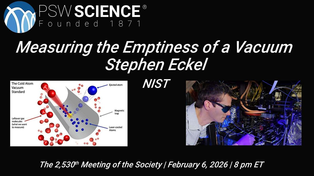 Join PSW Science® on February 6 at 8 PM as we welcome Stephen Eckel, Group Leader at Fundamental Thermodynamics Group, Sensor Sciences Division NIST.