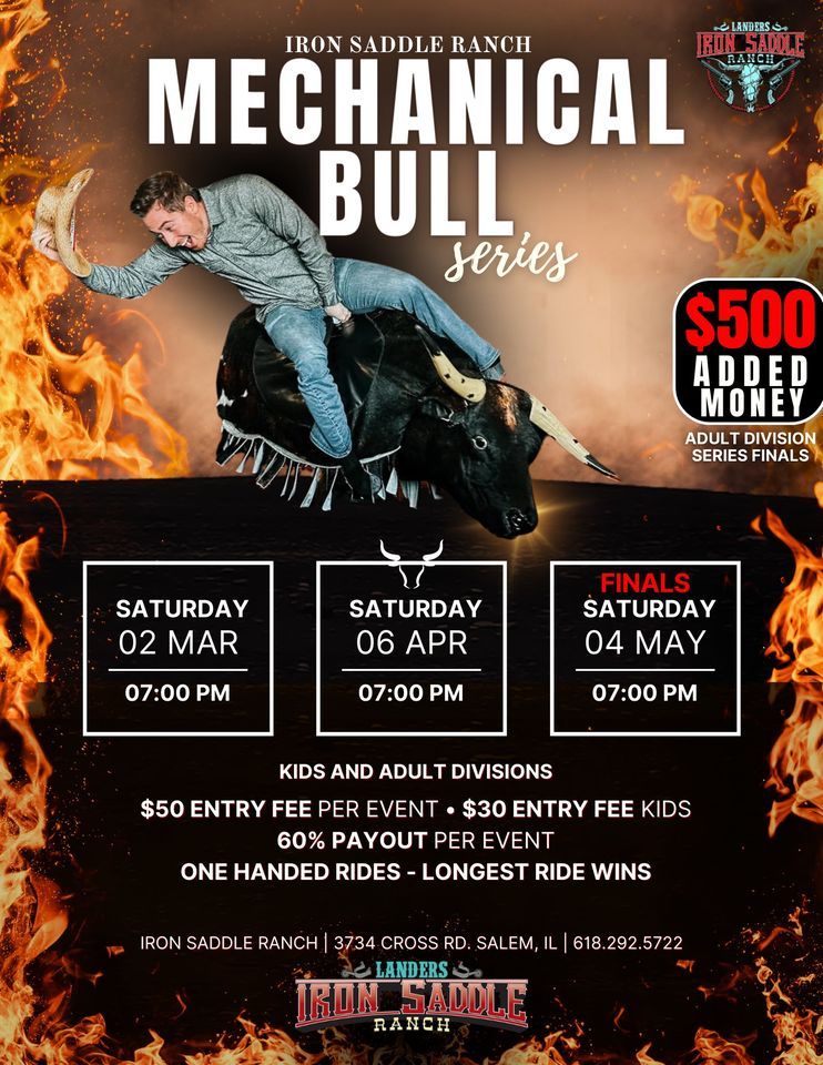 Yeehaw! ? Get ready for an adrenaline-pumping showdown at our upcoming Mechanical Bull Series! ?? Join us March 2nd, April 6th and May 4th for an epic event featuring both a kids division and an adult division. It's gonna be a wild ride you won't want to miss!Hold on, that’s not all, get ready to be blown away by the incredible skills of the one and only Josh Tate, our amazing announcer! ?? He'll keep the energy high and the excitement soaring throughout the entire mechanical bull series. Don't miss a moment of his electrifying commentary! Mark your calendars and spread the word! ??