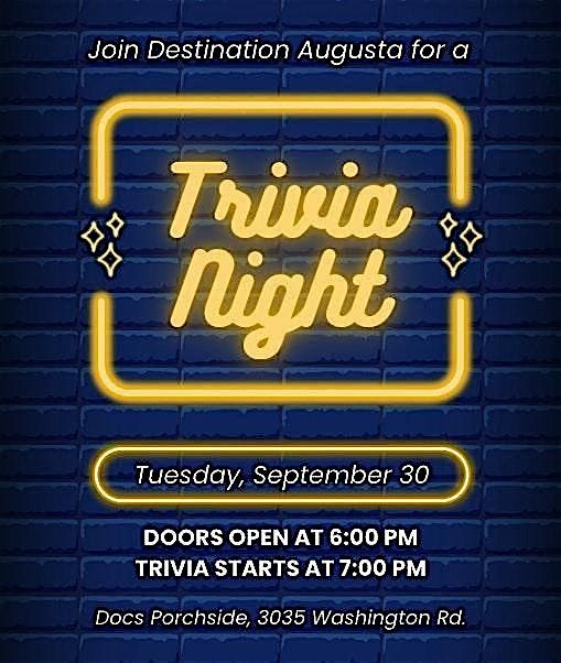 Join Destination Augusta for a fun-filled evening of trivia designed just for media professionals! Test your knowledge of Augusta’s history, hidden gems, and all the ways Destination Augusta can support you and your work. Bring your media friends, form a team, and start brainstorming your team name—prizes are on the line!