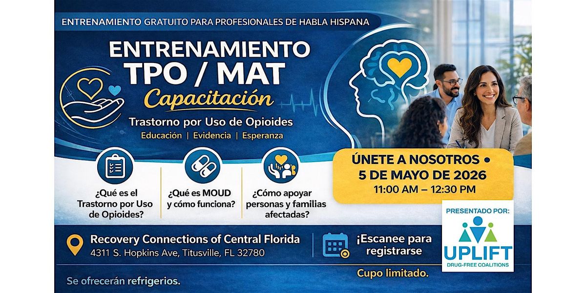 UPLIFT Drug-Free Coalitions ofrece una presentación educativa gratuita diseñada específicamente para la comunidad hispanohablante. Nuestro objetivo es asegurar que las personas y familias reciban información importante sobre el trastorno por uso de opioides y su tratamiento en su propio idioma.