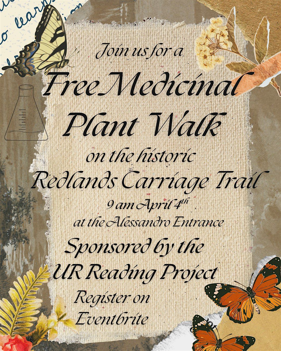 Join us for a fun and informative Medicinal Plant Walk along the beautiful Redlands Carriage Trail. Discover the natural remedies hidden in local flora and learn how to identify and use medicinal plants right from the experts. This is an in-person event perfect for nature lovers and curious minds looking to connect with the outdoors and old herbal wisdom.