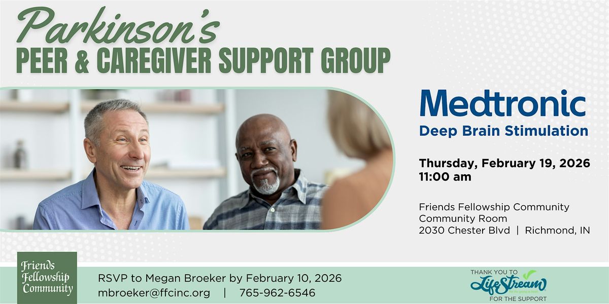 Join us for our Parkinson’s Peer & Caregiver Support Group on Thursday, Feb. 19 at 11am as we welcome Amber Johnson from Medtronic for a special presentation on deep brain stimulation (DBS).