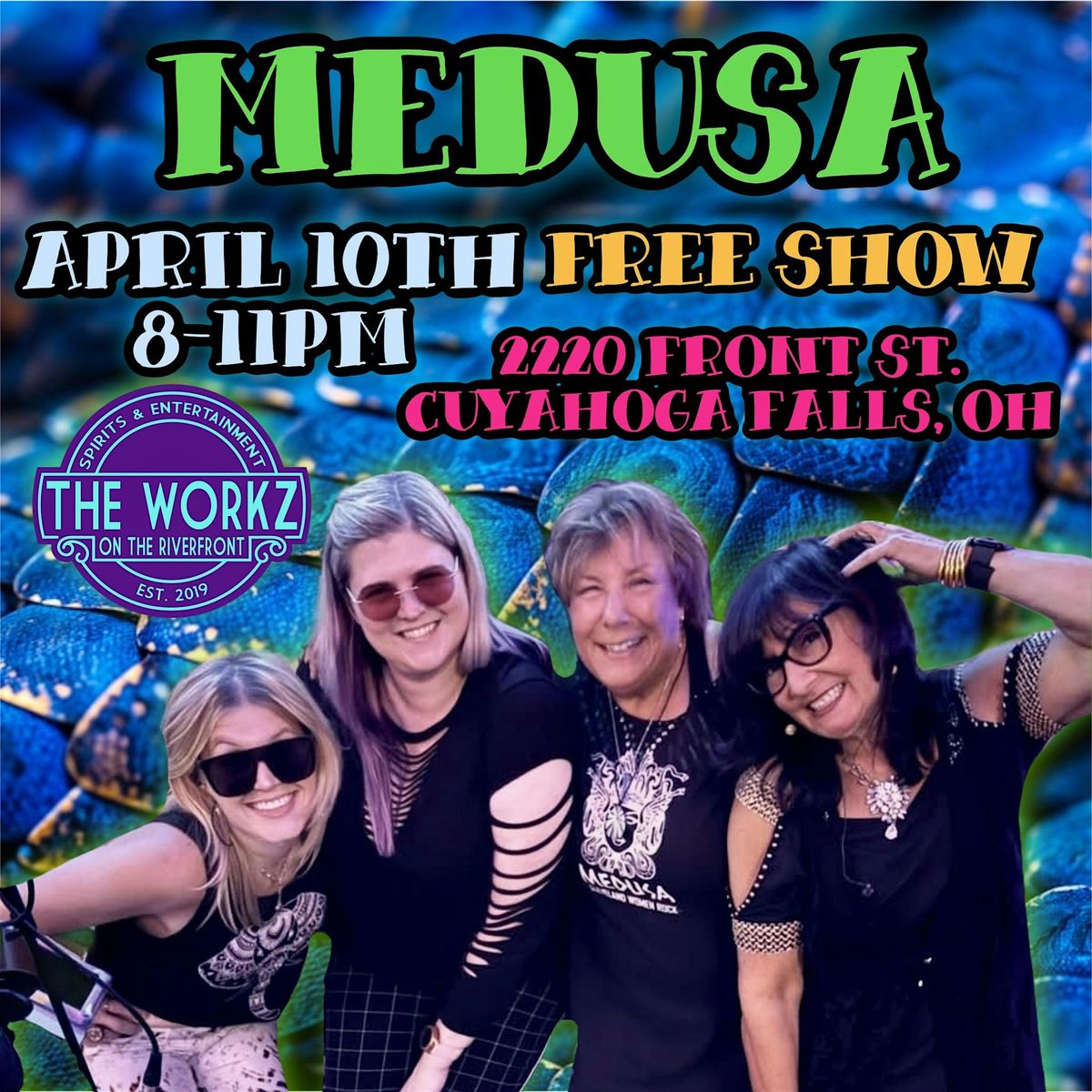 Join us for a killer performance by Medusa, an all-female powerhouse from Northeast Ohio bringing fierce energy, killer vocals, and attitude to the stage. Known for their electrifying mix of hard rock, classic hits, and original anthems, Medusa always delivers a show you’ll feel in your bones.