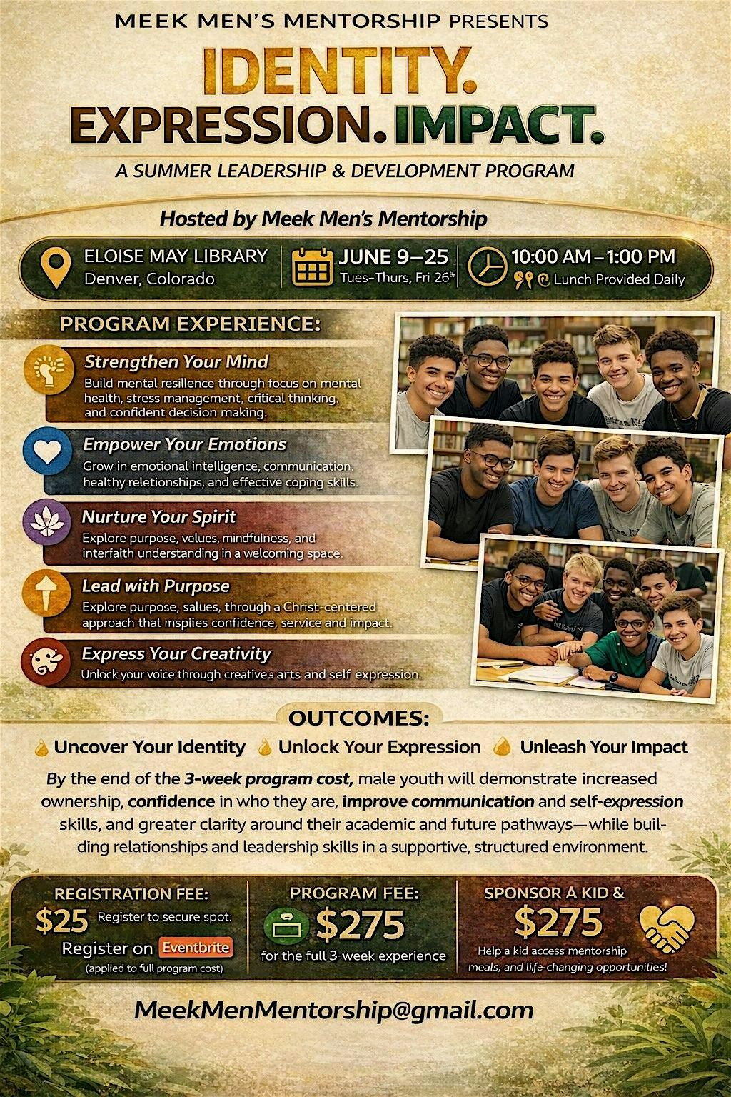 Meek Men’s Mentorship presents Identity. Acceleration. Impact.—A 2-week leadership and development program designed specifically for high school males.