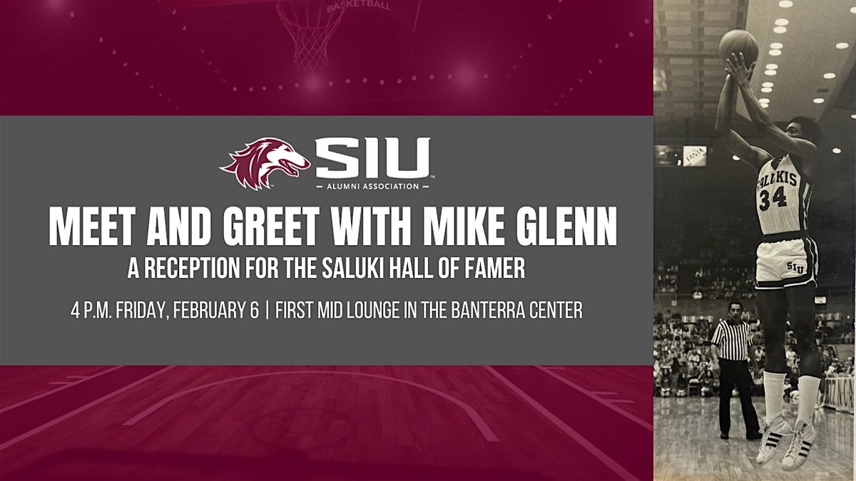The SIU Alumni Association invites alumni and fans to meet with Saluki Hall of Famer Mike "Stinger" Glenn during a public reception before the SIU vs Murray State men's basketball game at the Banterra Center on Friday, February 6. Saluki Athletics will formally retire Glenn's jersey during the game.