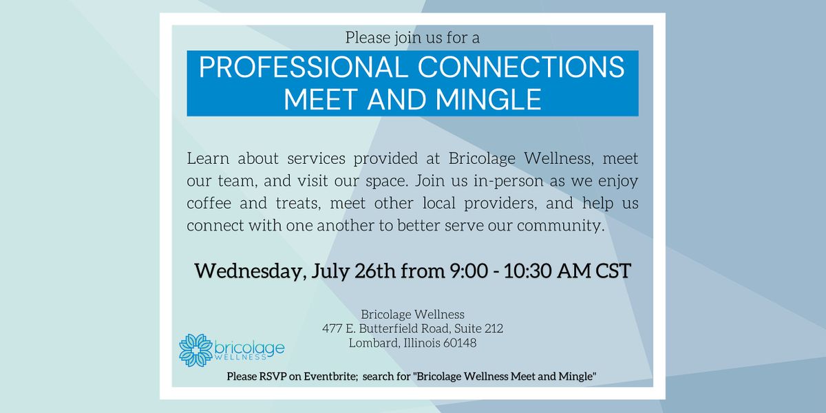 Learn about services provided at Bricolage Wellness, meet our team, and visit our space. Join us in-person as we enjoy coffee and treats, meet other local providers, and help us connect with one another to better serve our community.