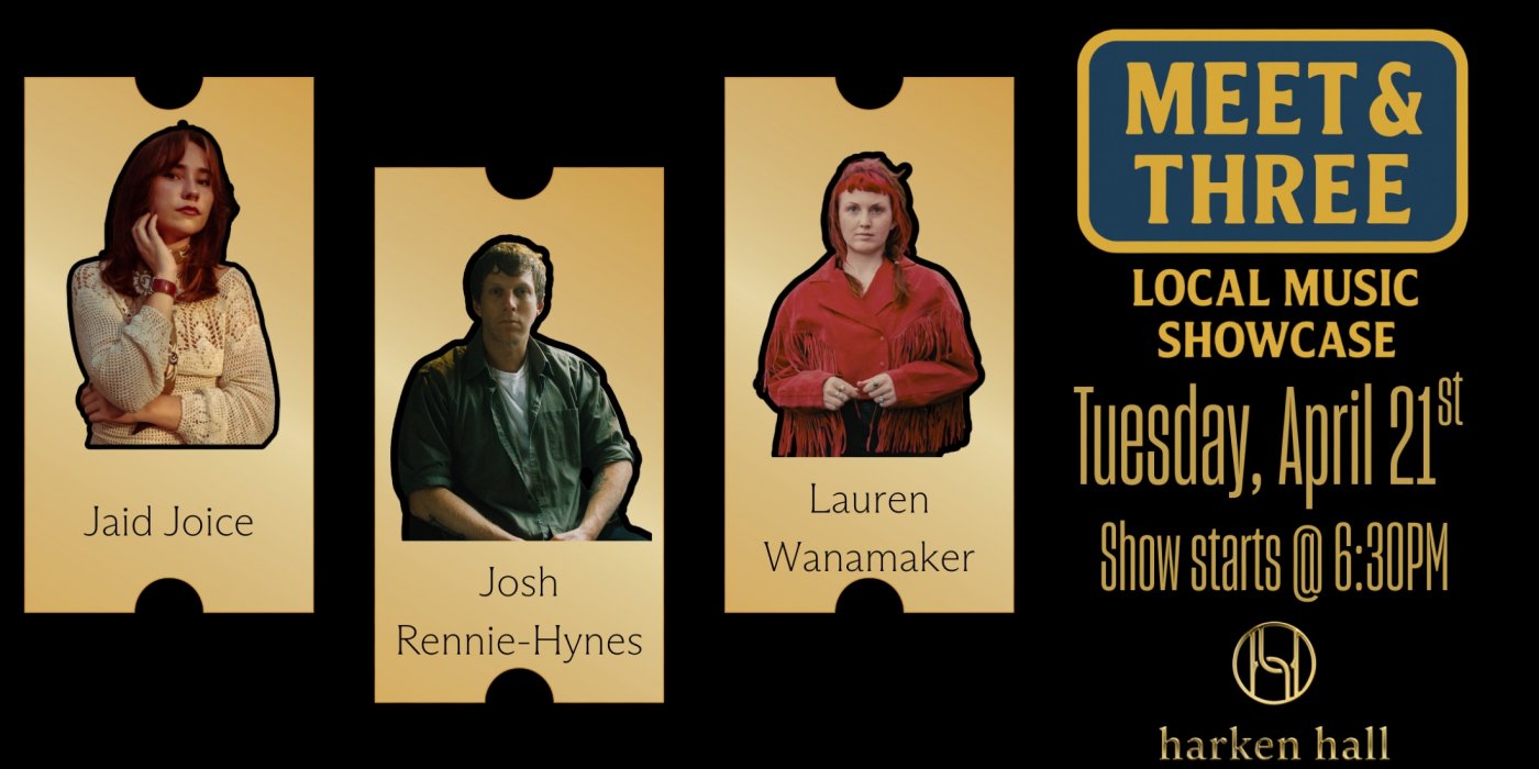 On April 21, Harken Hall’s Meet and Three Concert brings three distinctive voices together for an intimate night of storytelling and song.