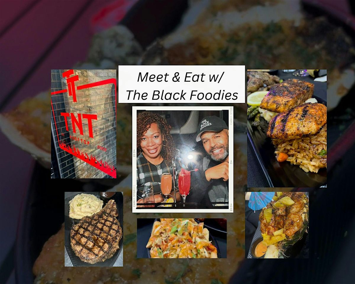 Meet & Eat with The Black Foodies for a delicious gathering filled with amazing food and great company. This event will take place on Saturday, March 7th, 2026 from 1:00 -3:30 p.m. at TNT Rooftop Restaurant located at 5405 W. Madison St., Chicago, IL. Come hungry and ready to mingle and network with fellow foodies as we explore the culinary delights by TNT Rooftop Restaurant. Don't miss out on this opportunity to indulge in a 5 course tasting experience. Tastings include TNT Signature Wings, Charbroiled Oysters, Vegetable Spring Rolls, Lobster Ravioli, Mini Shrimp Pineapple Bowl, Bone-In Ribeye, Blackened Salmon w/ Garlic Mash, Chef's choice dessert, and a refreshing TNT House Cocktail (Menu subject to change) Dino & Miss Coretta hope to see you there!