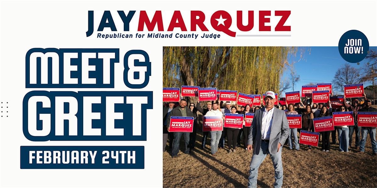 Come hang out in person and get to know Jay Marquez as he shares his vision for Midland County Judge! It's the perfect chance to chat, ask questions, and see why Jay’s the right choice. Don’t miss out on this casual, friendly gathering!