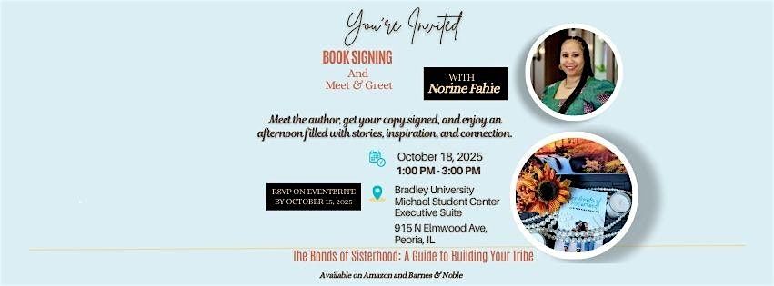 Hey everyone! Join me, Norine Fahie, in Peoria for a celebration of The Bonds of Sisterhood: A Guide to Building Your Tribe! This isn’t just a book signing—it’s an afternoon of stories, laughter, inspiration, and plenty of good vibes.