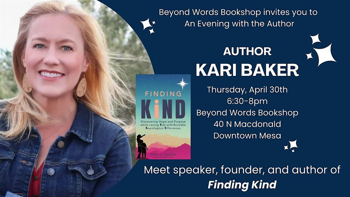 Join us for a fun & relaxed night in person with the amazing Kari Baker author of Finding Kind and found of Kind Families! Get ready to chat about her memior of her own journey through her son's neurodivergent diagnosis, ask questions, and hear some cool stories straight from the author herself. Donβt miss this chance to connect with Kari and others in the community. See you there!