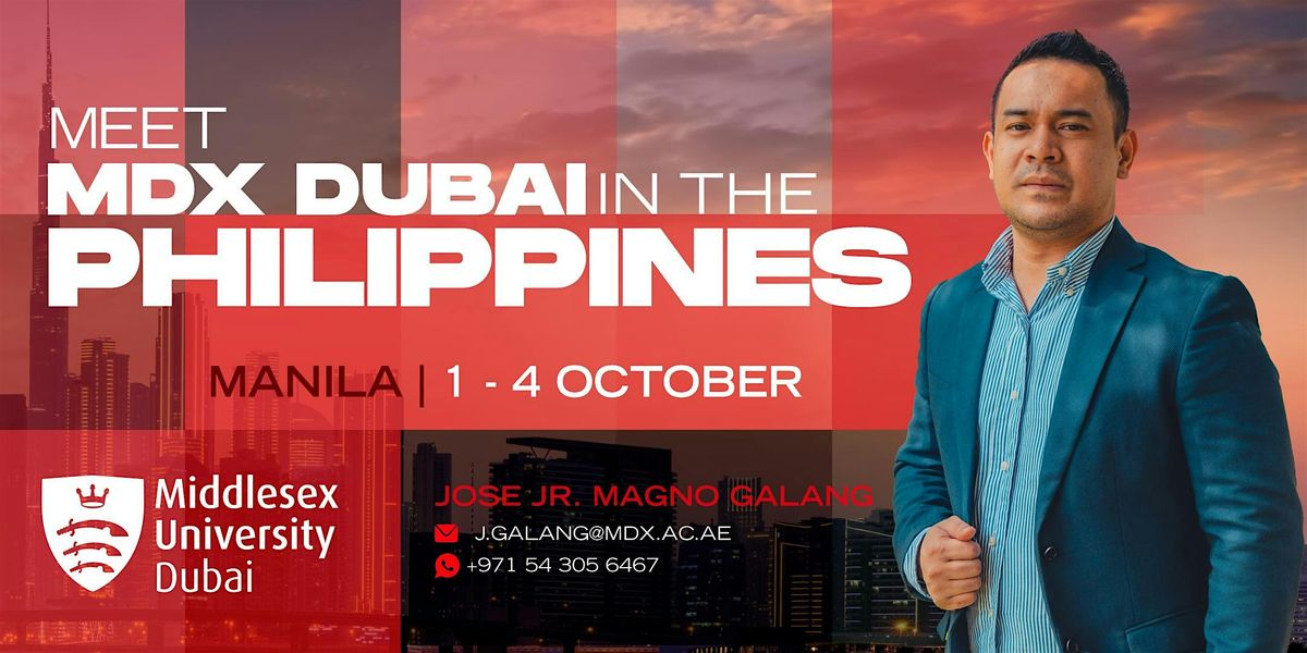 Meet MDX Dubai in Philippines, Manila from 1 - 4 October and receive one-on-one guidance about studying for your UK degree in Dubai!