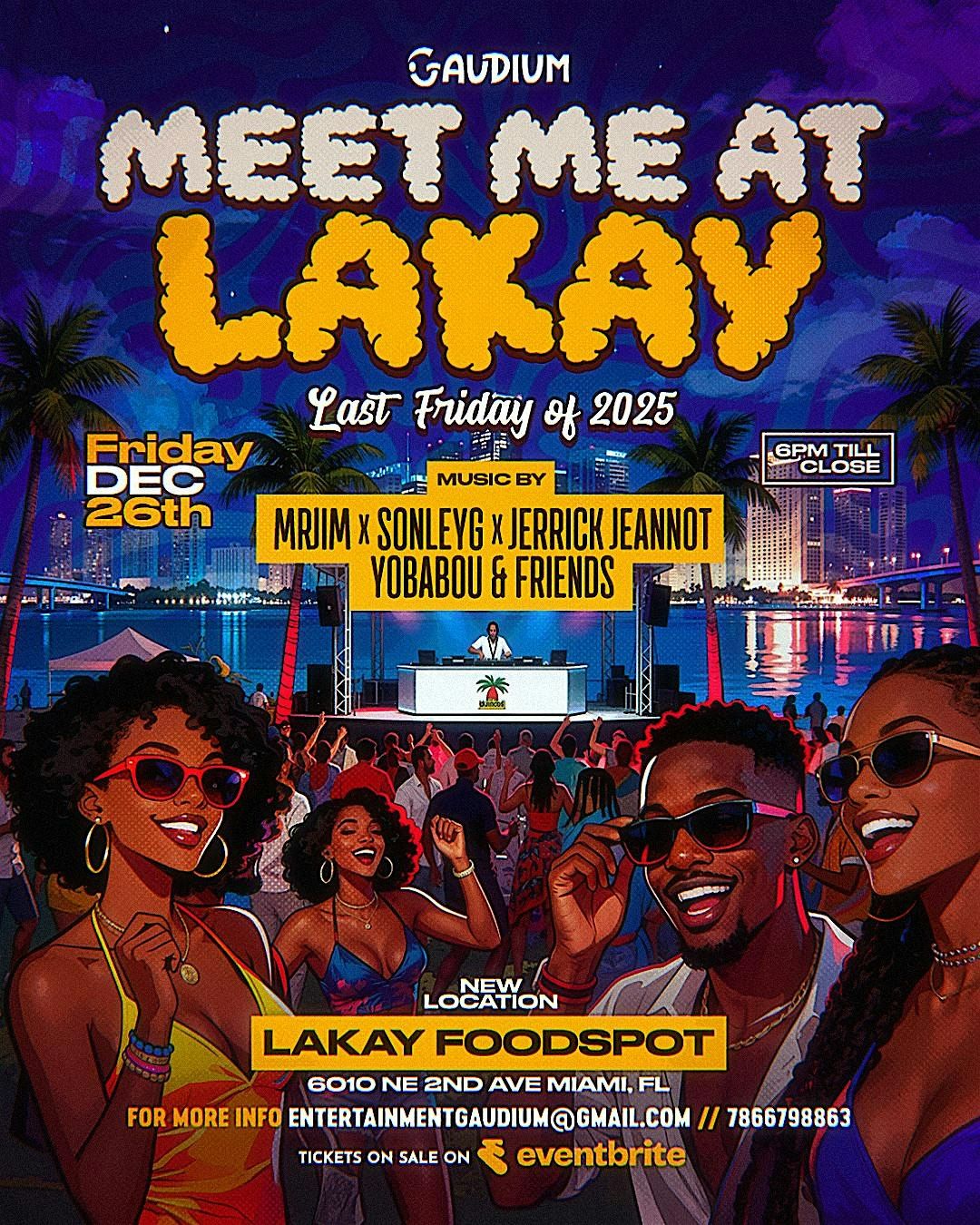 Get ready for an unforgettable night of rhythm, energy, and pure connection! Join us at MEET ME AT LAKAY, where the beats of Afro House, Afro Tech, and Amapiano take over the night. Experience the electrifying sounds of Jerrick jeannot, Mr. Jim, yobabou, SonleyG, and Friends as they bring the heat and keep you moving nonstop. Come early, stay late β vibe with amazing people, indulge in delicious food and drinks, and let the music transport you straight to paradise. This is more than a party β itβs a cultural experience. πβ¨