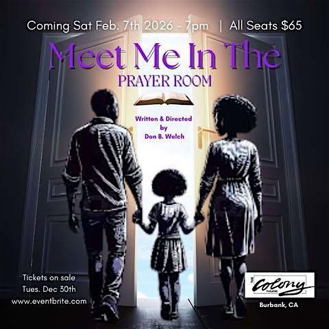 Join us for MEET ME IN THE PRAYER ROOM at The Colony Theatre Company on February 7, 2026 at 7:00 PM (Pacific Time). Don B. Welch's hit stage play RETURNS for one performance only. - Sat. Feb. 7th 2026 at 7pm. (Doors open at 6pm) "It's a story of family survival during a time where we only have FAMILY!! You will laugh! You will cry!! You will rejoice and know that nothing is impossible if you have faith! Meet us in the Prayer Room See you there! with an ALL STAR CAST!!!