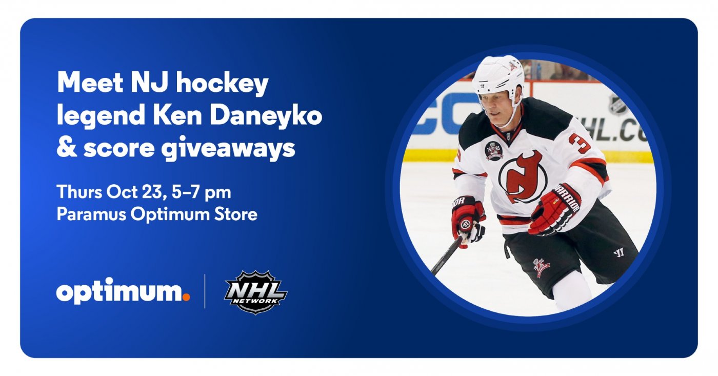 Head full speed into hockey season with Optimum! Stop by the Paramus Optimum Store to meet NJ hockey legend Ken Daneyko score giveaways and enter to win an NHL Network™ prize pack.