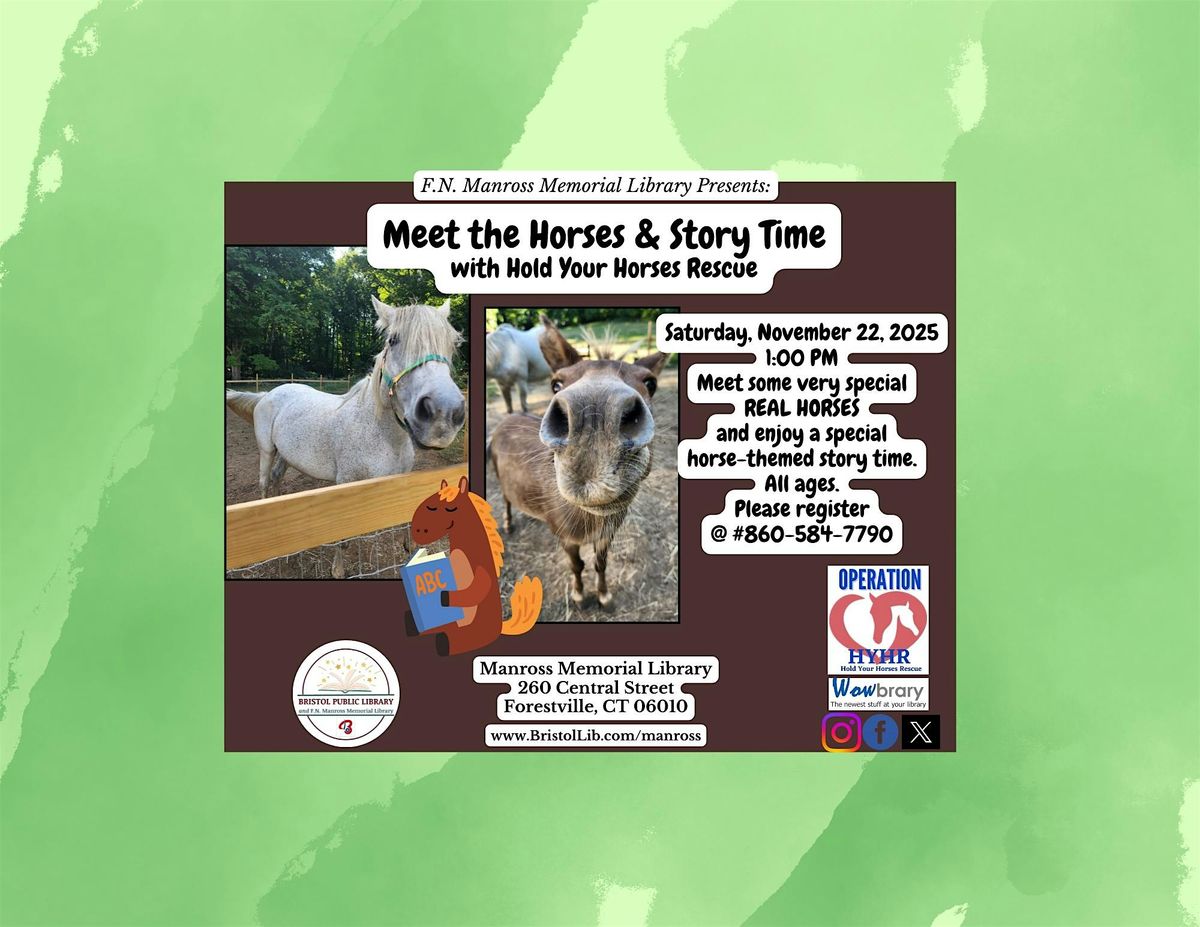 Meet some very special REAL HORSES and enjoy a special horse-themed story time with Hold Your Horses Rescue. All ages. Please register online or by calling the Manross Library @ #860-584-7790.