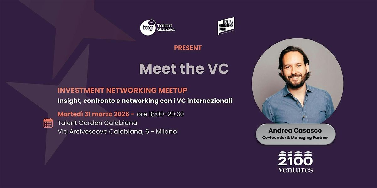 Meet the VC torna con una terza sessione esclusiva insieme a 2100 Ventures, fondo europeo che supporta la nuova generazione di startup tecnologiche ad alto potenziale, con l'obiettivo di sostenere l'innovazione e favorire la transizione verso un'economia sostenibile.