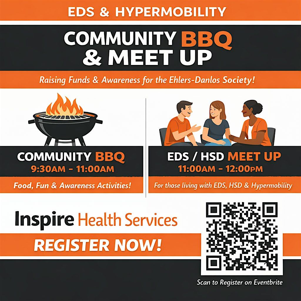 Join us at Inspire Health Services on Friday, May 9 for a Community BBQ and EDS/HSD Hypermobility Meet Up raising funds and awareness for the Ehlers-Danlos Society during EDS and HSD Awareness Month.