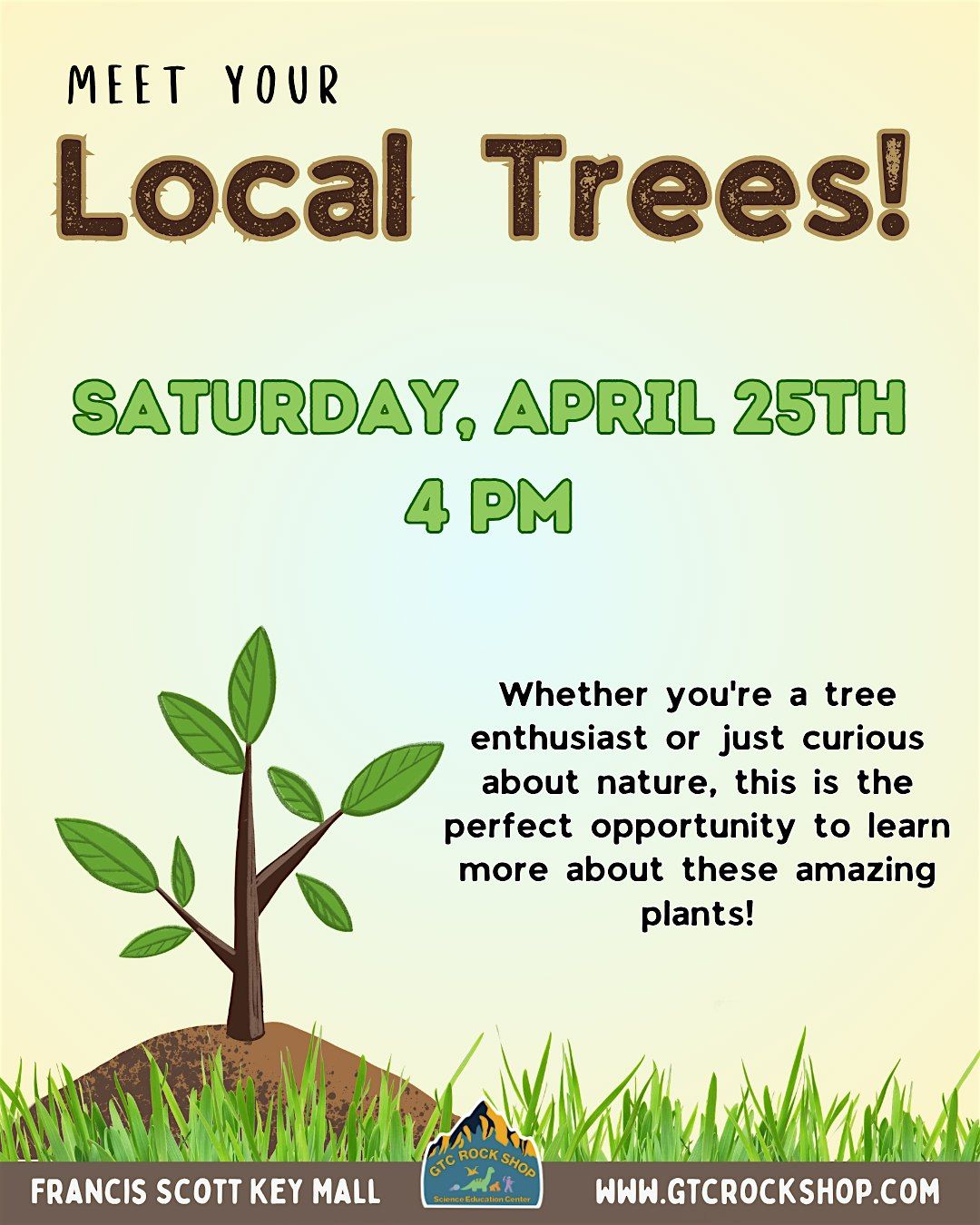 Come join us at GTC Rock Shop and Educational Center for a fun and informative event all about trees! Whether you're a tree enthusiast or just curious about nature, this is the perfect opportunity to learn more about these amazing plants. Learn about how to be able to identify some local native trees by their leaves.