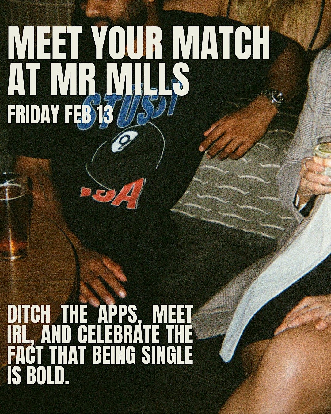 This Valentine’s weekend, Mr Mills teams up with We Met at a Bar to do things differently. It’s a night for singles to ditch the apps, meet like-minded people IRL, and celebrate the fact that being single is bold. Your ticket includes a drink on arrival, with plenty more available at the bar.