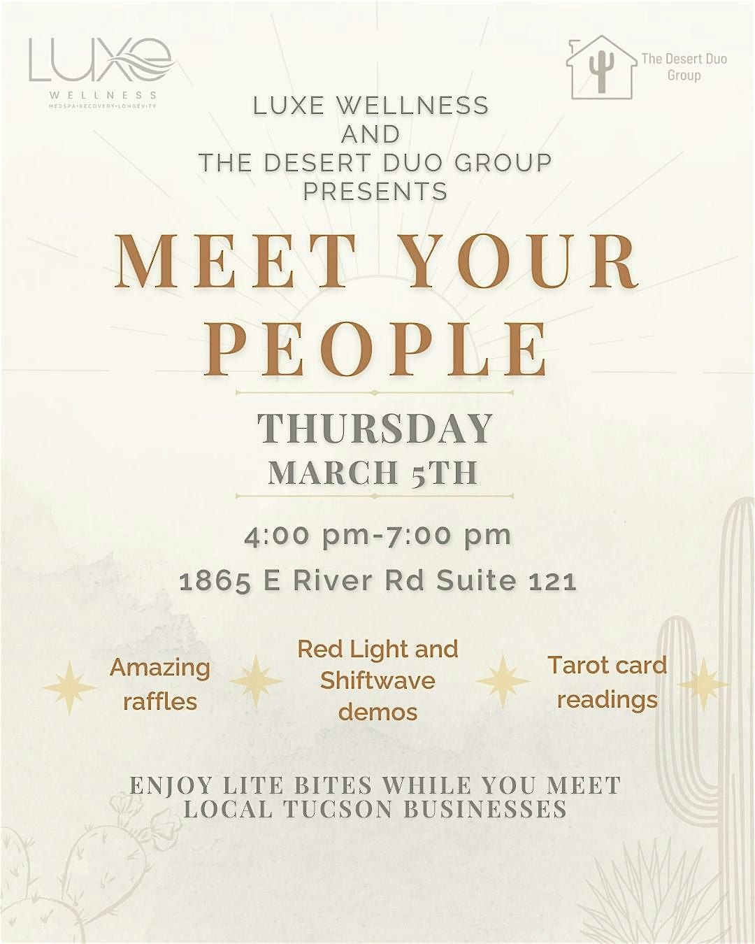 New to Tucson or feeling ready to expand your circle? Meet Your People is an evening designed to help you feel more connected—both to the city and to the providers who support your lifestyle and well-being.