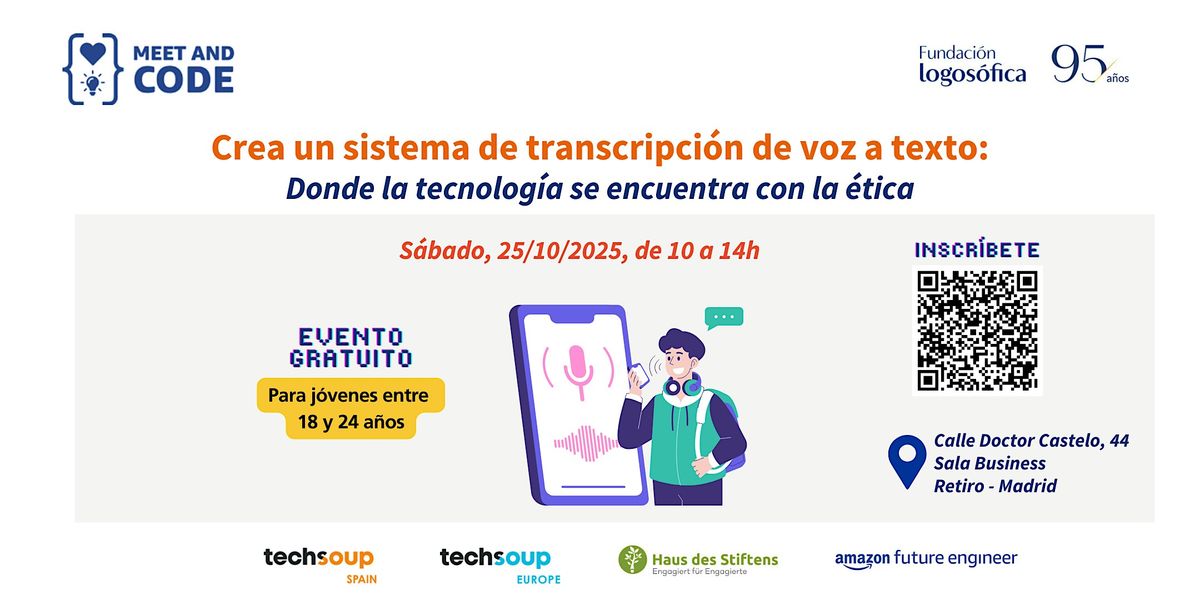 La Asociación Europea de Logosofía y Meet and Code 2025 te invitan a un taller GRATUITO donde construiremos un asistente que convierte lo que decimos en texto. Perfecto para jóvenes que quieren explorar el futuro de la tecnología.
