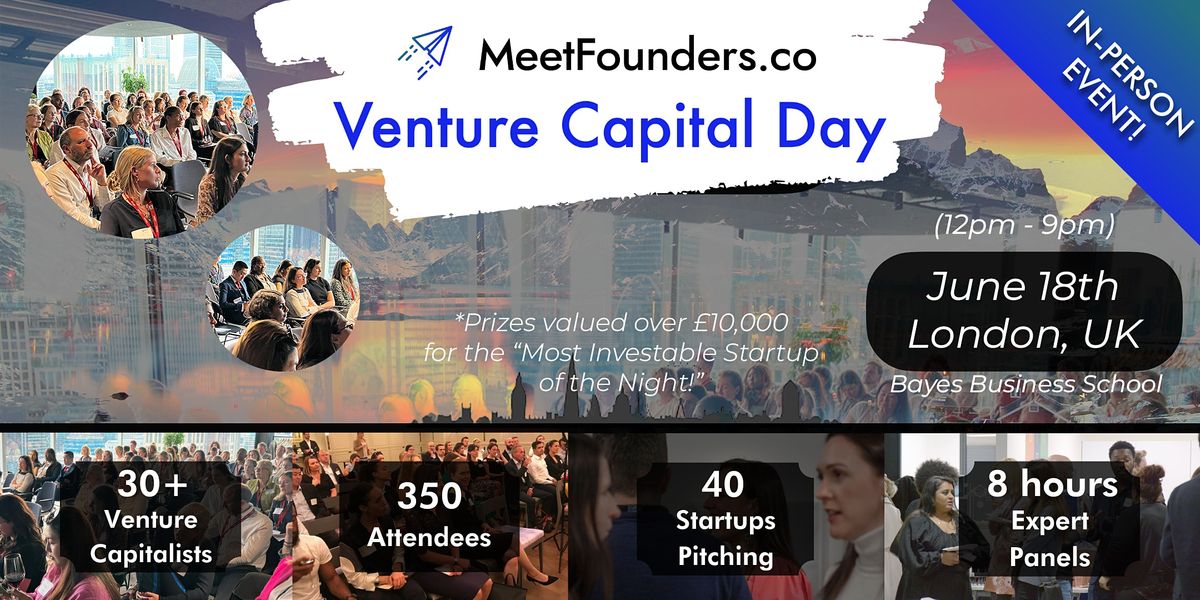 We have partnered with Bayes Business School and leading venture capitalists to bring your startup to the next level. Can't wait to see you there.Key Highlights: 3 Conference Stages + Networking * 350 attendees! * 30+ VCs* 40 Startup Pitches