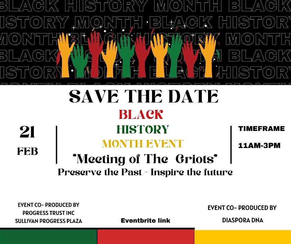 Join us for an unforgettable intergenerational celebration of story and local history during the 100th anniversary of Black History Month. February 2026 marks the centennial celebration’s theme: “A Century of Black History Commemorations.” Meeting of the Griots Exhibition is a free, family-friendly gathering bringing together elders, youth, artists, scholars, and community members to share stories, preserve heritage, and experience culture and connection.