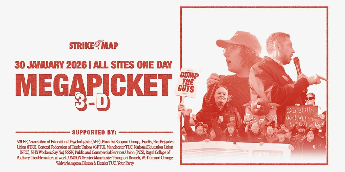 Following the successful Megapicket on 9 May, which shut down Lifford Lane, and Megapicket II on 25 July, which closed all five sites across Birmingham and Coventry, Strike Map—alongside unions, campaign groups, and community organisations—is now organising Megapicket 3-D, targeting all sites from 6am on 30 January 2026.